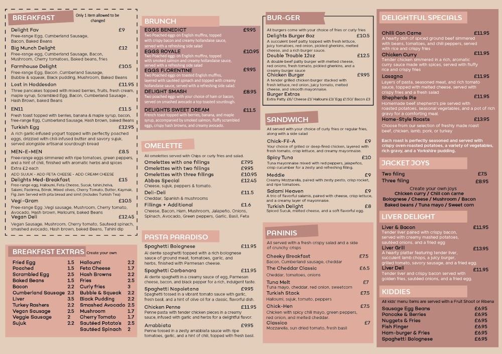 Nestled in the heart of Hoddesdon, Delight Coffee stands out as a beloved local gem on High Street. The café, which has been in business since 2004, combines a friendly atmosphere with a stylish, updated interior, perfect for unwinding over a cup of coffee or enjoying a hearty meal. Its central location makes it easily accessible for locals and visitors alike. Parking can be found nearby, adding convenience for those traveling by car.